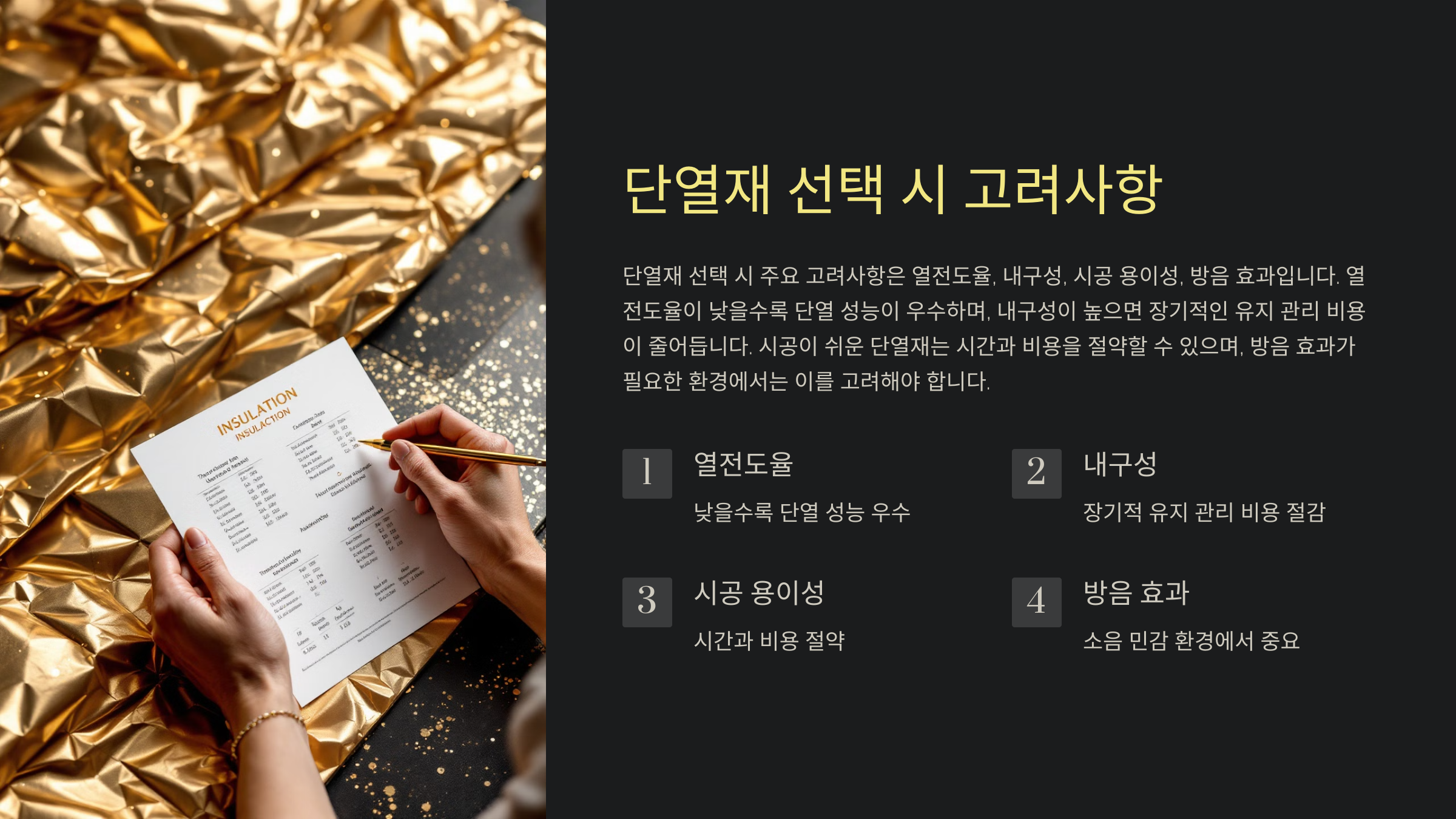 단열재 선택 시 고려해야 할 요소