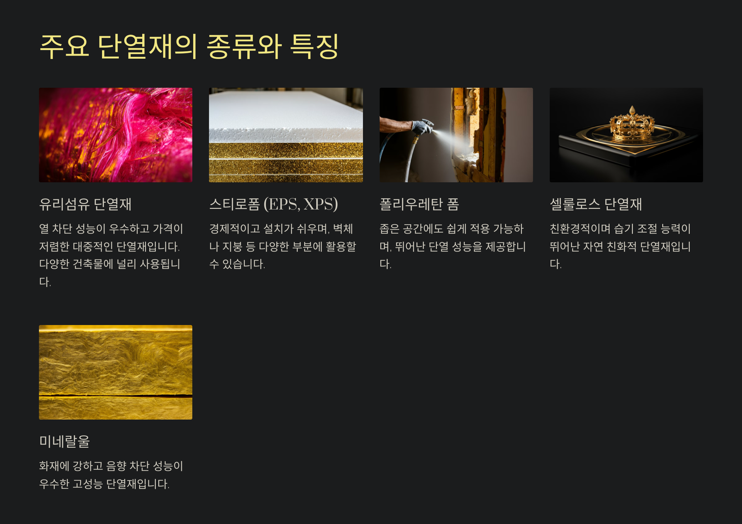 주요 단열재의 종류와 특징