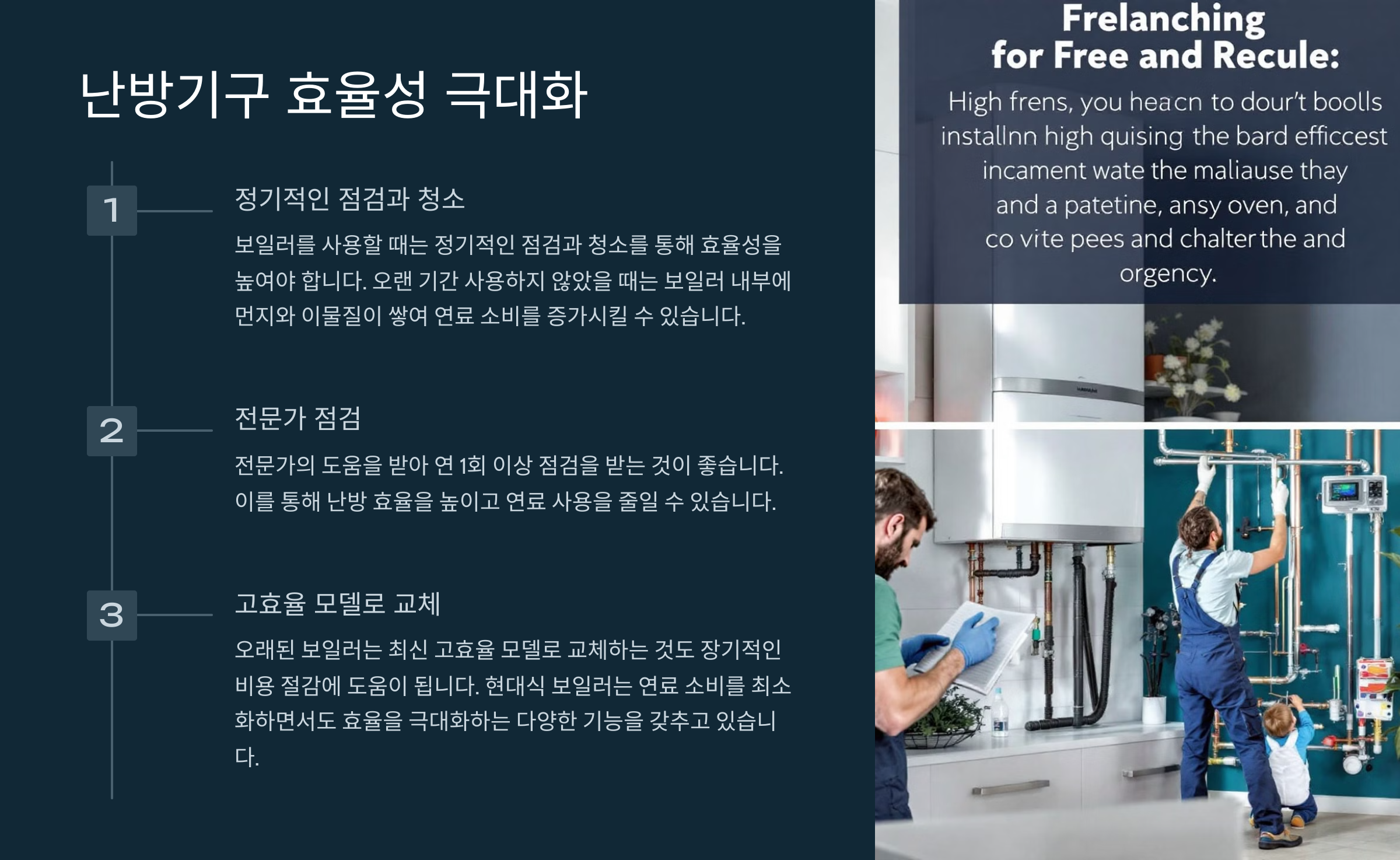 보일러를 사용할 때는 정기적인 점검과 청소를 통해 효율성을 높여야 합니다. 오랜 기간 사용하지 않았을 때는 보일러 내부에 먼지와 이물질이 쌓여 연료 소비를 증가시킬 수 있습니다. 청소와 점검을 통해 난방 효율을 높이고 연료 사용을 줄일 수 있습니다. 전문가의 도움을 받아 연 1회 이상 점검을 받는 것이 좋습니다. 또한, 오래된 보일러는 최신 고효율 모델로 교체하는 것도 장기적인 비용 절감에 도움이 됩니다. 현대식 보일러는 연료 소비를 최소화하면서도 효율을 극대화하는 다양한 기능을 갖추고 있어, 초기 투자 비용을 절약된 난방비로 빠르게 회수할 수 있습니다.