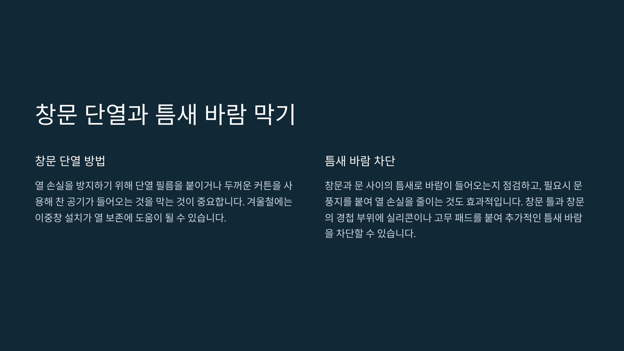 창문 단열과 틈새 바람 막기
