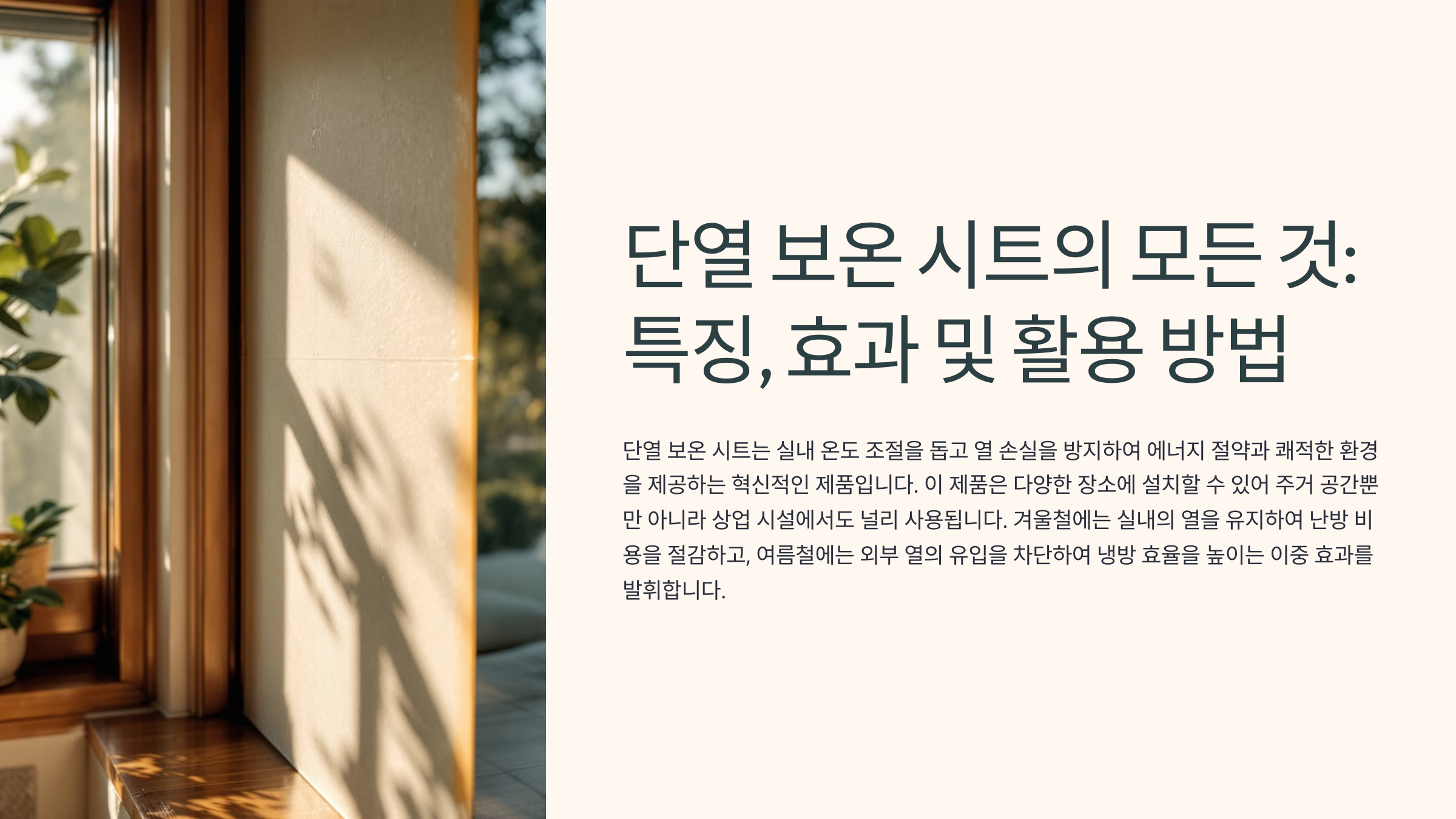 A: 단열 보온 시트는 겨울철에는 실내의 온기를 유지하고, 여름철에는 열 차단 효과를 발휘하므로 사계절 내내 유용합니다.