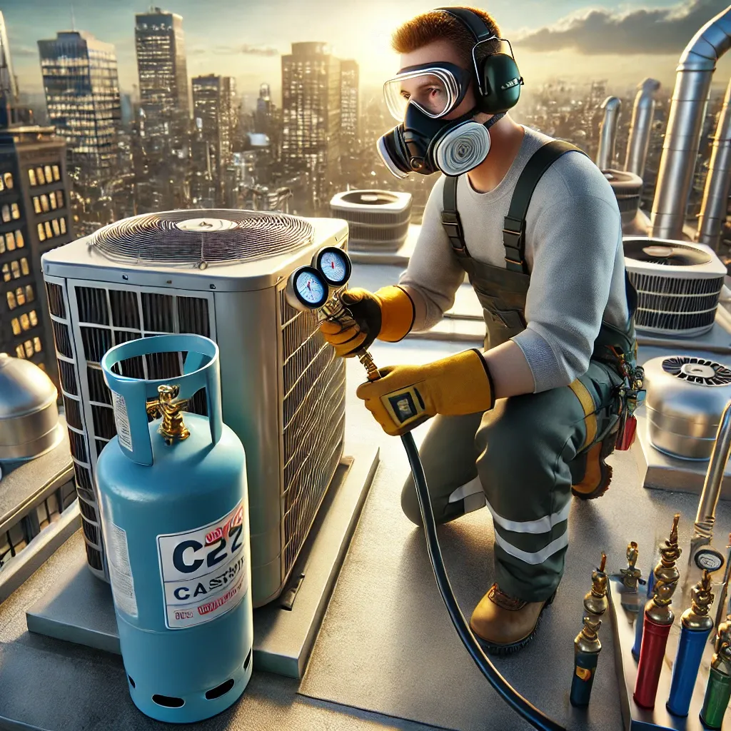 에어컨에 사용되는 가스는 주로 R22와 R410A 두 종류가 있습니다. R22는 오존층 파괴 물질로 현재 점차 사용이 중단되고 있으며, R410A가 대체제로 많이 사용되고 있습니다.
