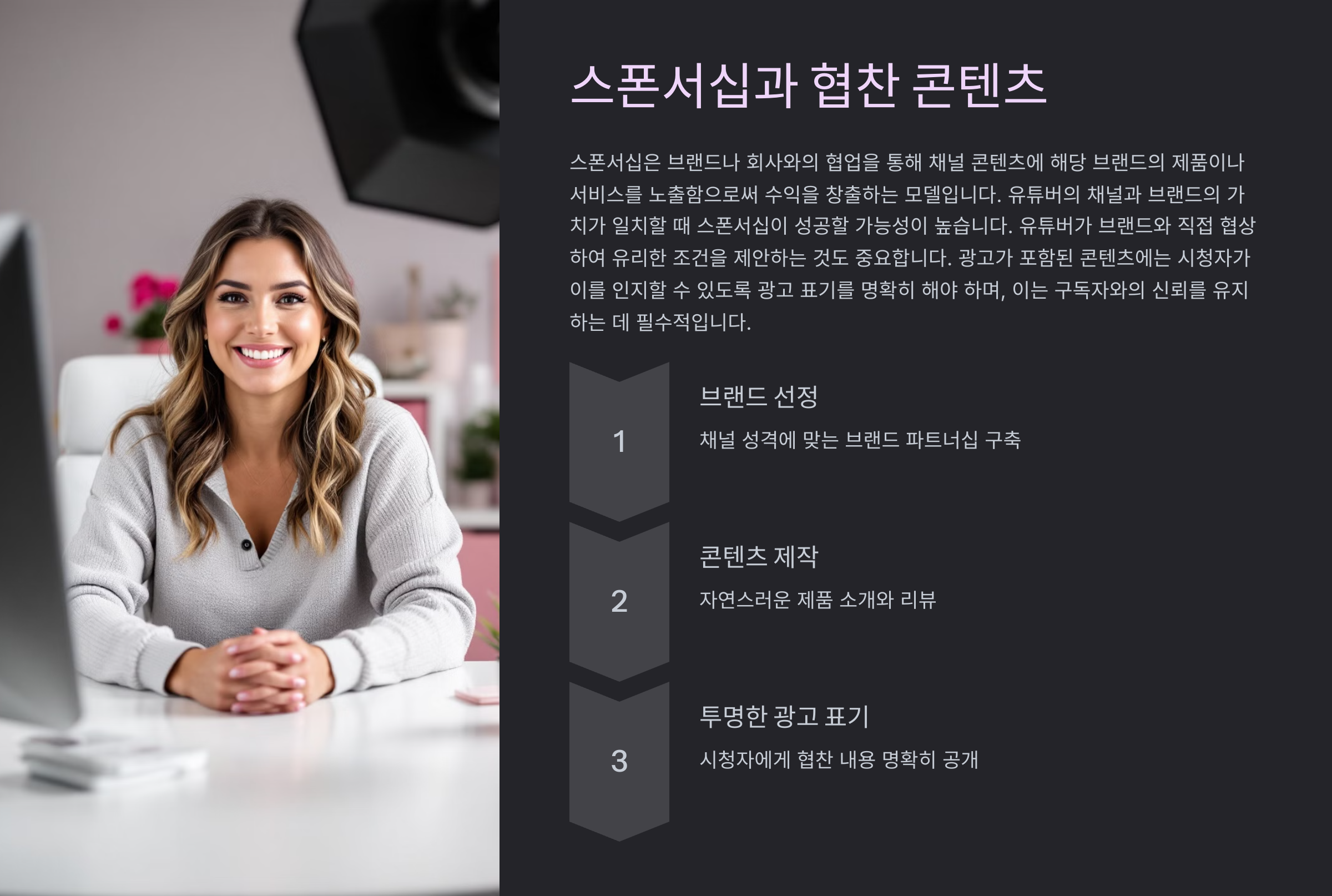 - 광고 표기 지침 준수: 협찬 콘텐츠는 반드시 광고 표기를 명확히 하여 구독자와의 신뢰를 유지해야 합니다.